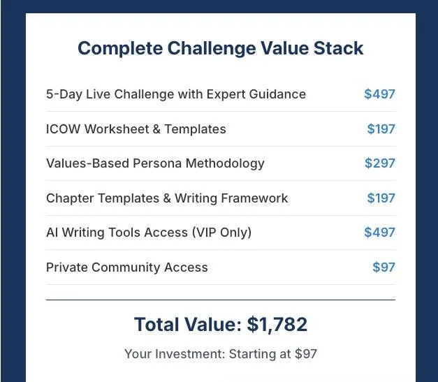 Day 1 solves this completely. You'll identify your exact audience and craft a message that speaks directly to their needs. The same system has created 15,000+ successful authors who all started with this same concern.